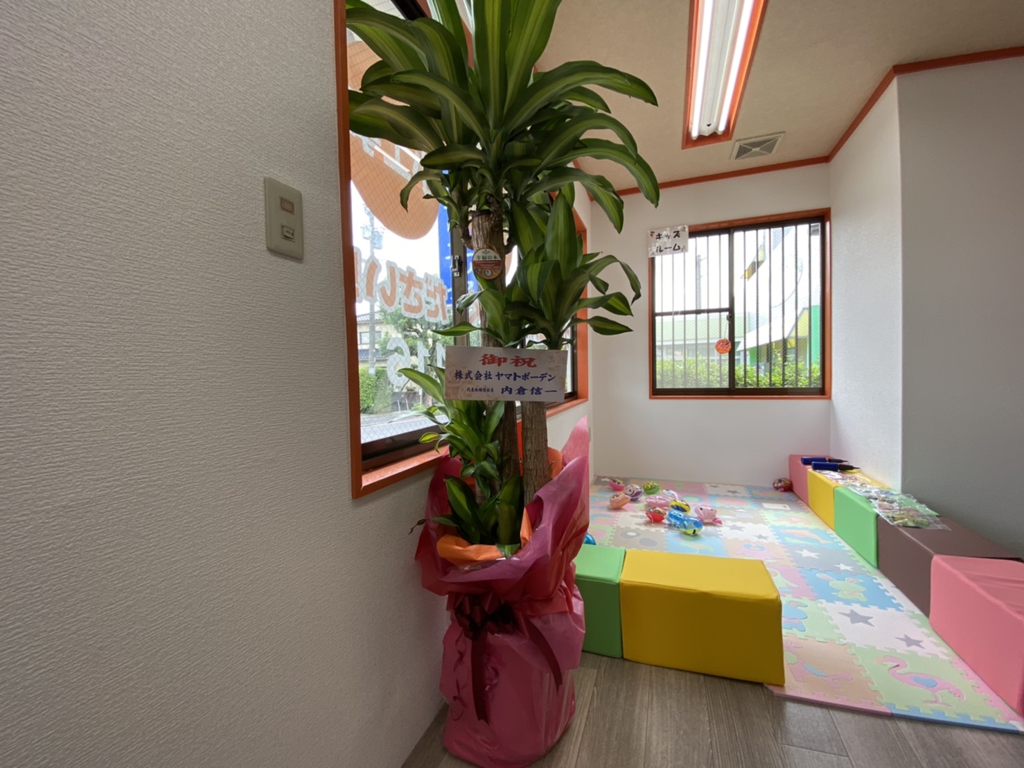 そして消毒された室内にお祝いのお花を設置させていただきました