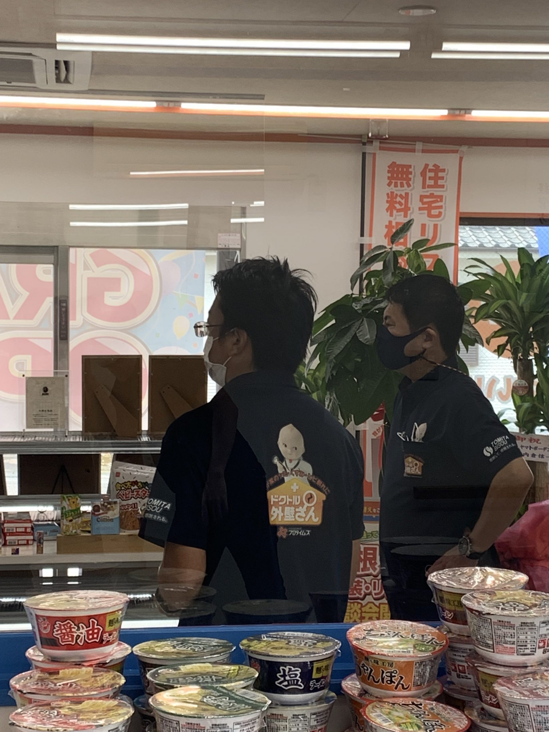 室内では姶良店店長と都城店店長が最終確認